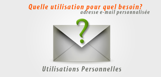 L’utilisation de l’adresse e-mail personnalisée par les particuliers peut-être assez vaste, soit créer dans une optique nominative, soit très similaire à celle des pros ou à celle des instigateurs d’une association ou d’un club (pour un groupe Facebook ou Google+, un forum thématique, un blog sur une plate-forme gratuite).